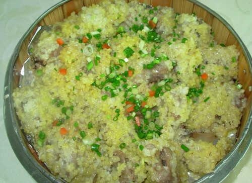 7、再倒入小米排骨,上籠蒸40分鐘左右即可。