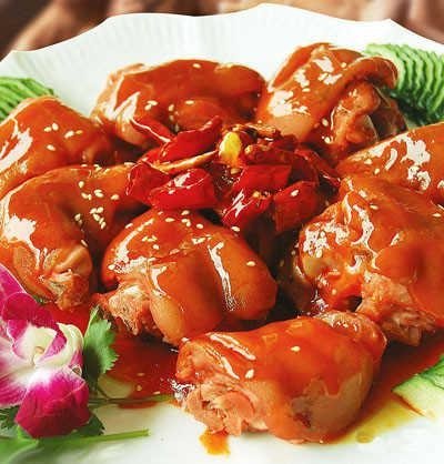 5、大火燒開轉小火至豬蹄熟爛即可收汁。