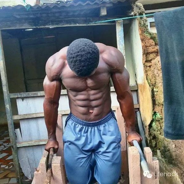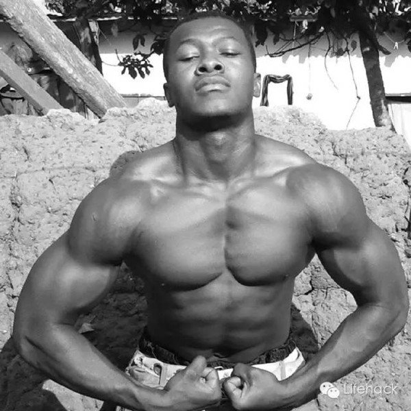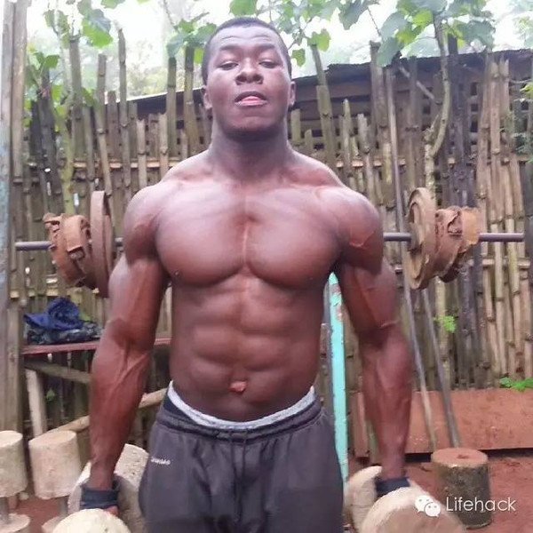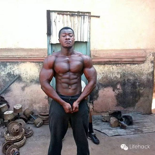 他叫Kulbila Samson,今年24歲,是來自非洲加納的一名健身狂熱者。光看他的肌肉身材,我們都會以為他一定是在什麼高檔健身房或者有個牛逼的教練帶著,才能打造出如此勁爆的身材。