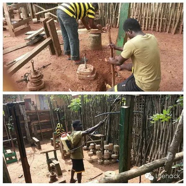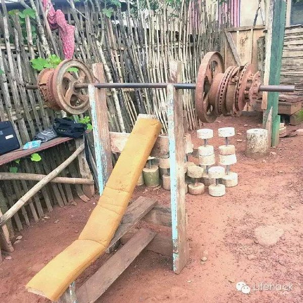 而當我們看到他和小夥伴平時的鍛鍊器械後,所有人都傻眼了!沒錯,他們的器械不是廢舊汽車上的鋼鐵零部件,就是用泥土做出的土石疙瘩。這就是他們的槓鈴和啞鈴!
