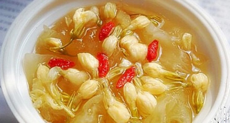 食材:銀耳10g、茉莉4g、冰糖60g、枸杞子適量