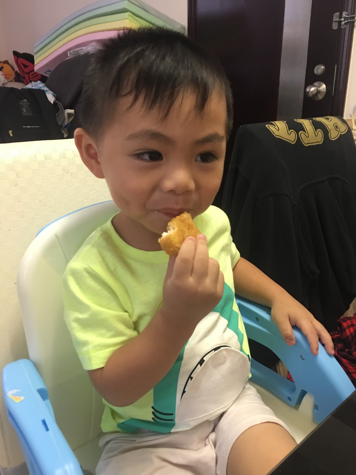 從前, 有個小朋友, 吼媽媽去洗手食午餐時, 响媽媽0個盒得6粒ge麥樂雞入面, 強搶咗一粒嚟食