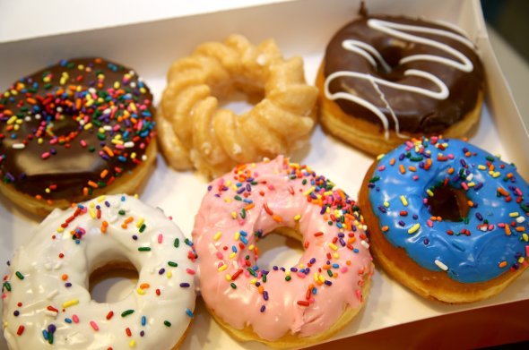 EinsteinsBagels的蛋類、加油站的沙冰飲料、DunkinDoughnuts的甜甜圈。