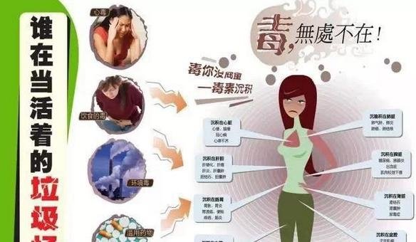 當機體內排毒管道不通、排毒不暢時,毒就會存在於體內,損害各臟腑功能,產生痤瘡、色斑、皮膚乾燥、失去彈性等多種疾病和不適。大便在腸道停留的時間太長,毒素通過腸壁重新被吸收到血液,令血液變得污濁,也加重肝臟的負擔,容易導致皮膚疾病。