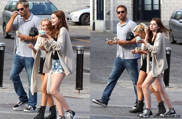 (左為戲中馮迪索前女友女警演員,她摟著保羅的女兒)
