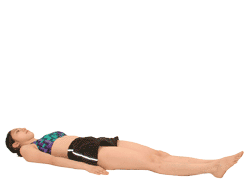 平躺仰臥,兩腿伸直,腳跟併攏。