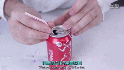 用吸管喝汽水總覺得不方便,它總會自己浮起來。