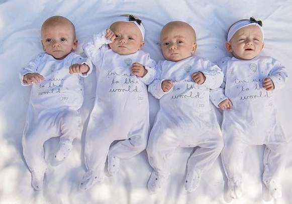 四胞胎在28周時就被產下,現在四個都十分健康!