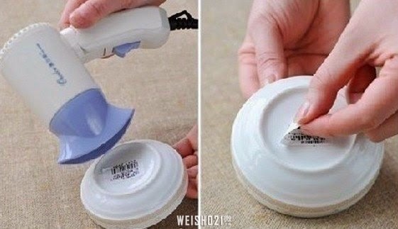 ▌用吹風機對準標簽的位置吹,質量稍好的不乾膠條,很容易就撕下來了。如果,表面還沾有粘粘的膠,就用手裡撕掉的標簽反覆粘到膠上,沒幾次膠就會被標簽粘下來了,這個方法比較適合優質的膠,如果是劣質的,效果不理想。