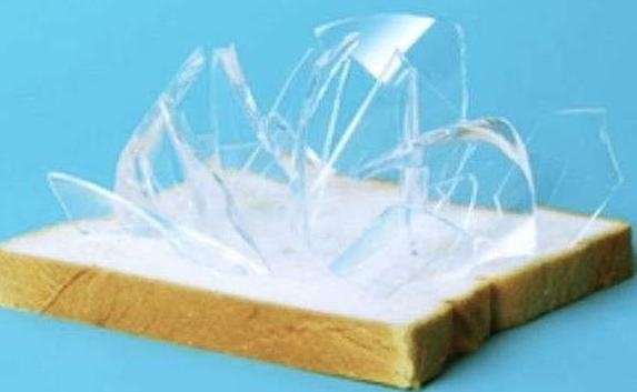 把一片吐司放在地上壓一壓,連小小的玻璃碎片都能輕鬆撿起。