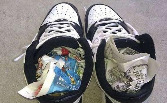 把報紙放進鞋子裡,立刻就能吸乾鞋子裡的濕氣。