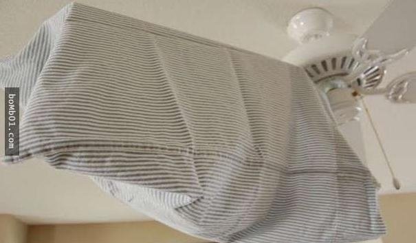 把一個舊枕套套在吊扇上,拿布從裡邊擦洗,這樣就能避免塵埃滿天飛啦。