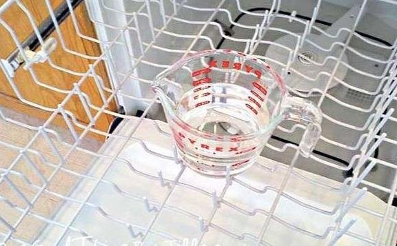 放一碗白醋在架子上,並且把洗碗機開到最高溫,然後底部再灑上一點小蘇打粉,再按下開關讓洗碗機工作,就能到達滅菌的作用。