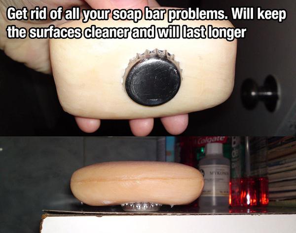 沒有香皂盒?香皂放在香皂盒裡變粘乎乎?找個啤酒瓶蓋按進去~