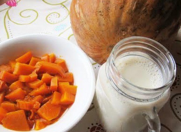 南瓜及豆漿(可改用鮮奶取代豆漿,再加上一個雞蛋)