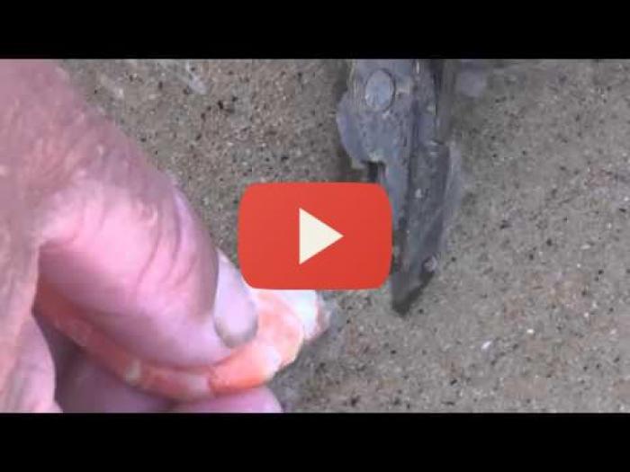 這個男子把一隻蝦插進沙堆裡,不到10秒的時間他就釣出讓人大驚失色的生物!