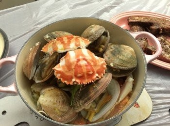 無水粉絲海鮮煲 2015 年 05 月 02 日發佈 高太廚房 列印 9 35 16866 請稍等. 請稍等. 近日經常於網上見到朋友整這個無水海鮮煲,家中各人都喜歡食海鮮,於是就嘗試用這方法去煮,效果十分之好!這海鮮煲甚麼調味料都不需要,菜與粉絲索了海鮮的汁,十分之鮮甜,原汁原味,真很不錯.... 食材 (5-6人) 1小時內 食材 任何菜類.粉絲.海鮮類 隨意 1我用了蜆1斤,將蜆放一些金屬物件於水中與蜆一起浸水約30分鍾(如蜆有沙,這方法會令蜆吐出沙) 2用了半斤游水中蝦,將蝦用牙籤於蝦背部挑出腸 3剪去蝦鬚及腳,洗淨待用 4用了三隻三點蟹,先用廚剪剪去蟹兩隻蟹鉗 即買 5再用牙刷刷去腳邊的去除泥沙,去除蟹肚內左右兩邊肺及胃 6將蟹斬開兩邊,蟹鉗 即買 用菜刀將殼拍散 7粉絲浸軟身後剪段 8今次用了半斤白菜仔,將白菜仔洗淨,放於底部,排上粉絲 9再將洗好了的海鮮排上,大火蒸15分鍾即可 TIPS 我比較喜歡用大火蒸方式,不會乾水...材料亦易熟...