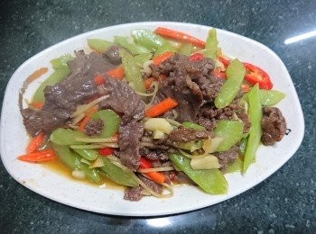 西芹炒牛肉 2016 年 03 月 16 日發佈 莎比亞 列印 2 35 10309 請稍等. 請稍等. 這事一道非常容易上手的快手菜,牛肉特別香嫩,西芹也非常有營養價值。 食材 (3-4人) 30分鐘內 食材 西芹 350克 牛肉 200克 調料 花生油 2湯匙 食鹽 1/2茶匙 薑 1小塊 蒜 3瓣 生抽 1.5茶匙 生粉 1茶匙 1牛肉去除筋膜切小薄片用適量油,鹽,生粉醃制5分鐘 2把西芹去掉老筋洗乾淨斜刀切片;薑切絲,蒜切大塊 3熱油鍋把西芹下鍋熗炒至5成熟後取出待用 4熱油鍋把牛肉下鍋滑炒 5炒至稍變色後加入薑蒜翻炒 6加入炒過的西芹 7調入適量生抽 8加入鹽大火翻炒均勻即可 TIPS 牛肉切片後可以再沖洗一下,這樣即可以洗去血水,又可以讓肉片有些水份,裹上生粉後炒出來來就比較嫩滑。