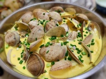 是日晚飯: 大蜆蒸水蛋 2020 年 02 月 21 日發佈 tse_taitai 列印 1 37 7876 請稍等. 請稍等. 蒸水蛋可以有唔同款式,可以加下蝦米、瑤柱丶肉碎,謝太太今次就整大蜆蒸水蛋,試唔到味,但見肥力一啖又啖,應該唔錯掛?! 食材 (1-2人) 30分鐘內 食材 大蜆 約半斤 雞蛋 2隻 水+雞湯+蜆水 共約250ML 蔥花 1大蜆用粗鹽水吐沙後,用百潔布擦淨外殼 2隔水蒸至蜆打開,蜆水唔好掉(好有鮮味),用個「哩」隔一隔,驚仲有沙 3蛋液加入水+雞湯+蜆水拌勻,蒸約8分鐘,灑上蔥花就完成