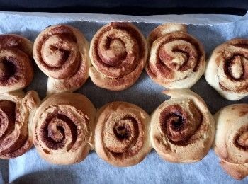 黑糖肉桂卷 2021 年 06 月 16 日發佈 Snowy Lala 列印 9 4 3247 請稍等. 請稍等. 下午茶時間到~~~ 一食食咗2個😋😛 食材 (3-4人) 1小時以上 食材 高筋麵粉 200g 鹽 4g 酵母 3g 奶 130g 糖 15g 無鹽牛油 26g 肉桂饀 黑糖 8g 肉桂粉 30g 1所有材料混合成團 2發酵1小時至2倍大 3排氣 4搓至光滑,蓋上保鮮紙休息15分鐘 5麵團展開成長方形,掃上少量牛油溶液,搽上肉桂饀 6捲成長條形,分割成9件 7二發1小時,180度焗20分鐘即可
