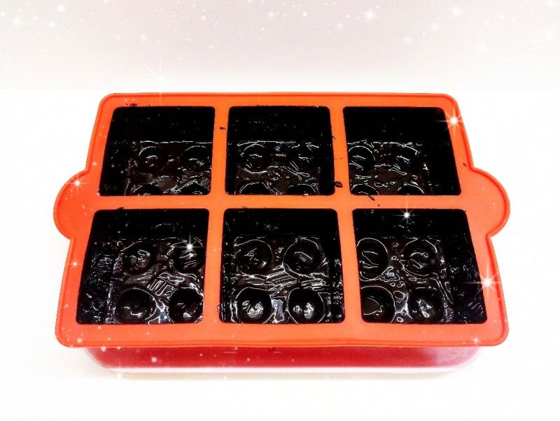 2先在模具均勻的塗上一層朱古力溶液,放進雪櫃冷藏約10-15分鐘至凝固(必需待完全凝固,才可再塗第2層) 2. 然後塗上第2層朱古力溶液,再放進雪櫃冷藏約5-10分鐘 3. 最後薄薄的塗上第3層朱古力溶液,放進雪櫃冷藏至凝固,備用