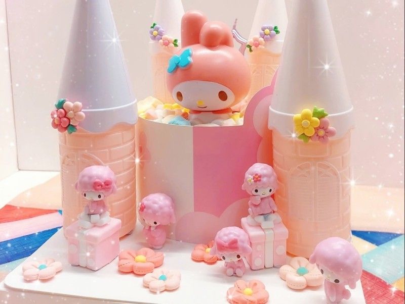 而主題公仔就要Melody,不過因為朱古力係啡色,好難夾到粉紅色,所以我唯有圍左粉紅色的蛋糕圍邊,仲有4個粉紅色的城堡,總之就全部都係粉紅色喇😍😍