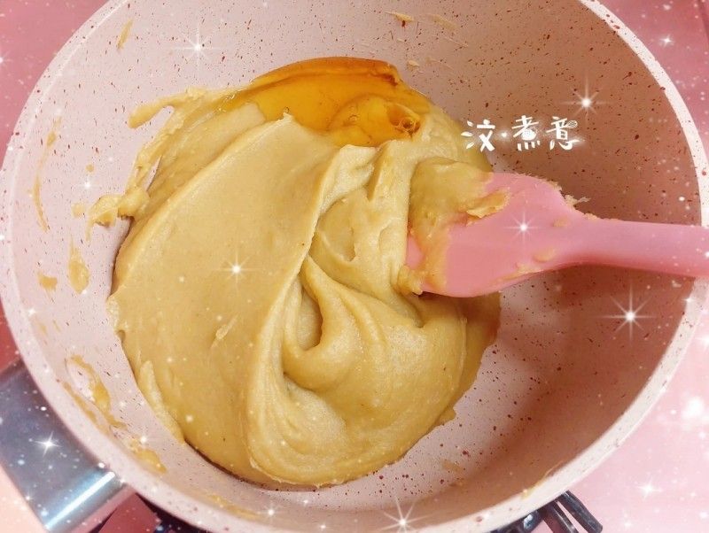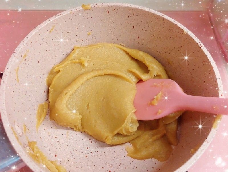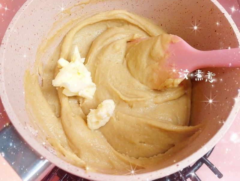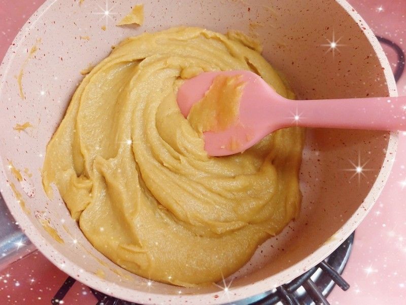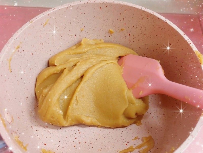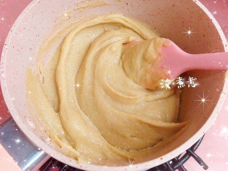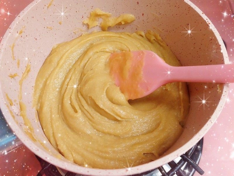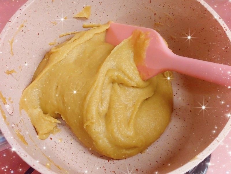 我今次只係整少份量,所以無用機炒,用人手炒左大概半個鐘左右,做栗子餡的材料好簡單,就係自家製的栗子蓉、糖、麥芽糖同牛油,炒到收乾水份同成團就ok喇!!