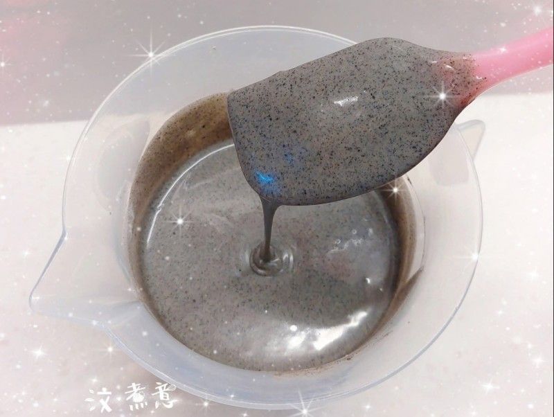 21. 再加入淡忌廉和鮮奶(分3次),用打蛋器拌勻 2. 最後,用篩加入粟粉,拌勻至無粉粒 3. 粉漿過箍,加入黑芝麻醬,拌勻,即可