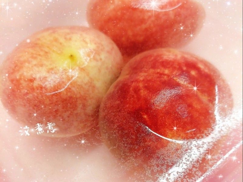 開始動手做之前我都會上網爬下文,原來有方法可以快速去除水蜜桃表面的絨毛,只需要用少少梳打粉加入水中,浸泡3分鐘左右,絨毛就會自動浮起✌️✌️