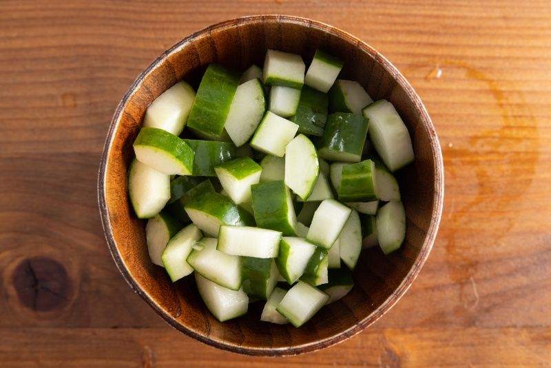 1. 將小黃瓜的籽去掉可以在後續炒製的過程中減少出水。