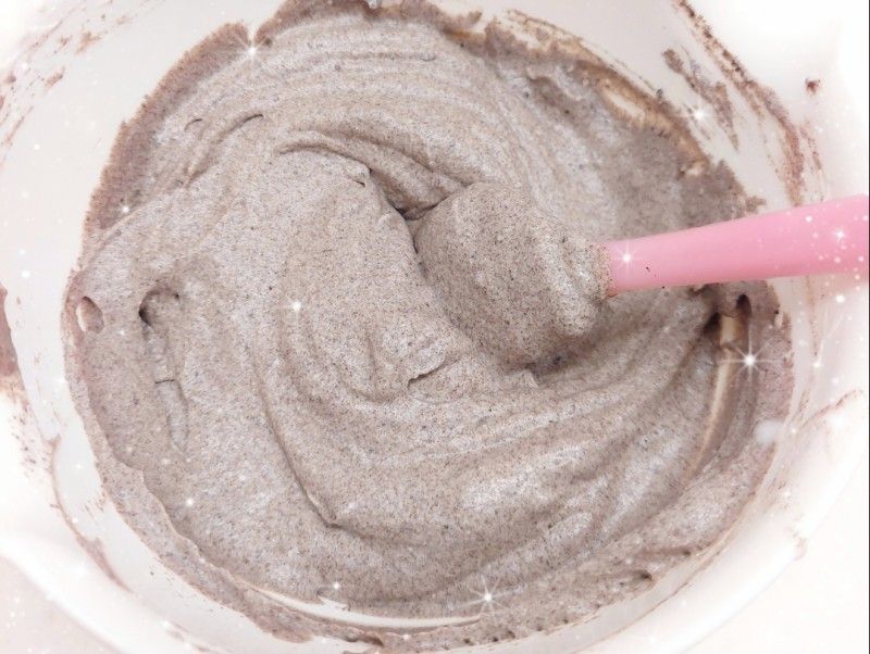 5慕絲層: 1. 魚膠粉加入鮮奶中(22 ml;拌勻後,靜置5分鐘,待魚膠粉完全吸水膨脹),用熱水坐溶(如直接用熱水開溶,魚膠粉會容易結塊),攪拌至魚膠粉完全溶解 2. 先將Oreo餅乾(70 g)打碎,備用 3. 將鮮奶(42 ml)用微波爐加熱10秒至微暖 4. 加入已溶解的魚膠粉,攪拌至完全均勻,放涼,備用