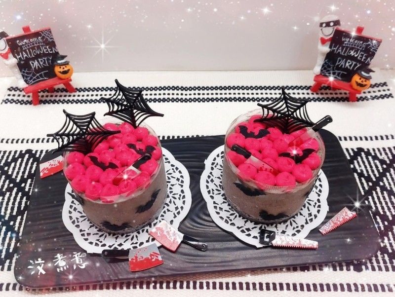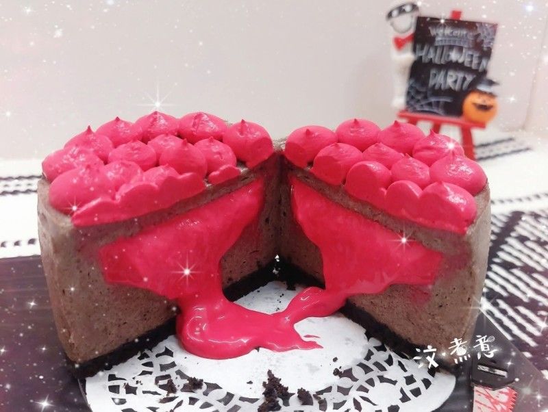 紅黑配搭係萬聖節的經典主題,以Oreo餅底同Oreo慕絲配上加左食用紅色色素的芝士流心同忌廉唧花,再加少少萬聖節的裝飾,營造出神秘又吸睛的視覺效果😍😍