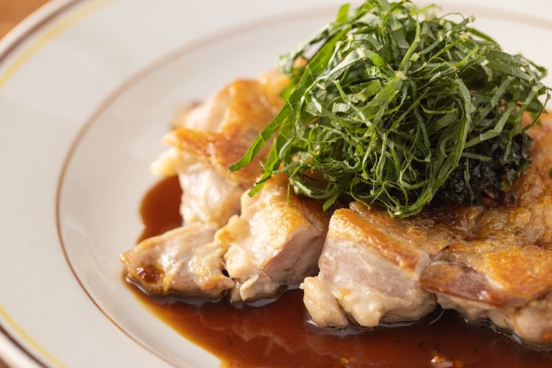 將雞腿排香煎成金黃焦脆,再加上醬汁與韓式芝麻葉,看似簡單的組合確有豐富的香氣,而且一樣的做法你也可以替換著香料料理,真的是不學起來不行呀~