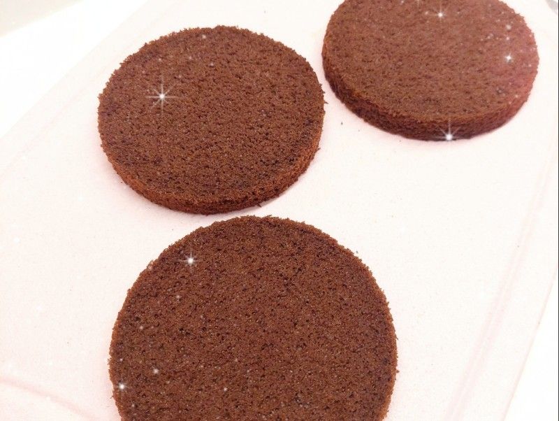 3海綿蛋糕: 1. 先將可可粉加入鮮奶(先用微波爐加熱)拌勻,然後加入牛油(牛油先用熱水坐溶/用微波爐加熱至溶化成牛油溶液),充分拌勻(必需攪拌至不見大的油圈,乳化效果才好,否則完成的海綿蛋糕會導致塌陷、回縮),備用