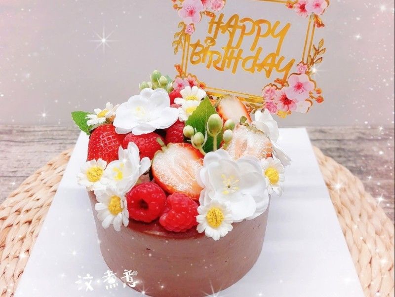 今次的蛋糕裝飾係抄考烘焙群組的成品圖,仿真茉莉花加上新鮮士多啤梨同紅桑子的配搭,好靚呀😍😍