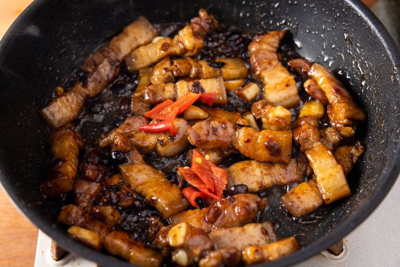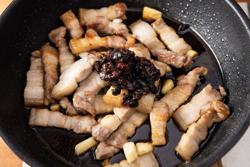 豆豉豬五花是將豬五花肉炒至焦香,再與爆香的豆豉、蒜末、辣椒、蔥段等配料一同拌炒,吃起來有豆豉的鹹香與豬肉的油脂香氣完美結合,是一道非常下飯又家常的料理,大家一定要學起來。