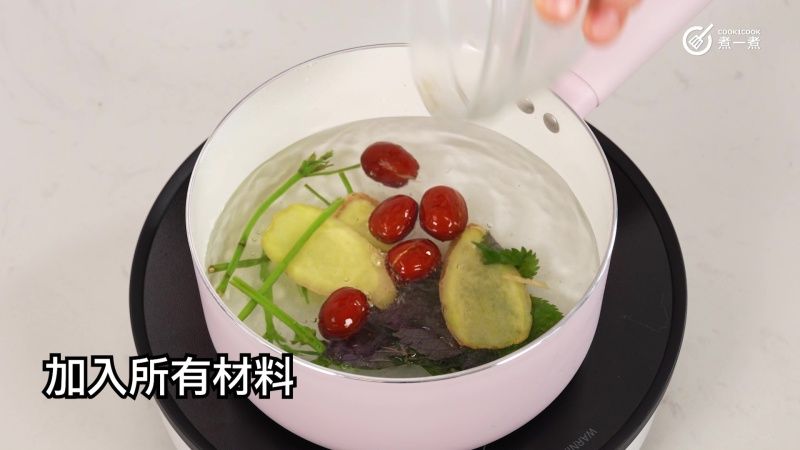 冬日飲品|祛寒暖身|潤肺止咳|養血安神| 紫蘇薑棗湯 2025 年 11 月 28 日發佈 Cook1Cook 列印 0 0 324 請稍等. 請稍等. 入咗冬呢排啲天氣真係話轉就轉,凍風一吹落嚟成個人都僵咗咁,仲好易疲倦、好易凍親、啲氣管又乾又痕。今日就帶大家整一款超簡單、真係冬天必飲嘅暖身補氣茶飲——紫蘇薑棗湯。 紫蘇葉:散寒解表、行氣寬中、止咳散痰、舒緩氣滯、祛寒暖胃、散風通氣 生薑:驅寒暖身 紅棗:補血養氣、潤肺生津、養血安神 食譜影片 查看影片詳情 食材 (1-2人) 1小時內 食材 紫蘇葉 30克 生薑 3-4片 紅棗 15克(約3-5粒) 水 1公升 1紫蘇摘出葉片 2莖撕碎 3洗淨浸泡 4紅棗拍扁去核 5洗淨浸泡 6生薑切片 7將紫蘇葉、紫蘇莖、薑片和去核紅棗放入煲中,加水細火煲30分鐘 8完成