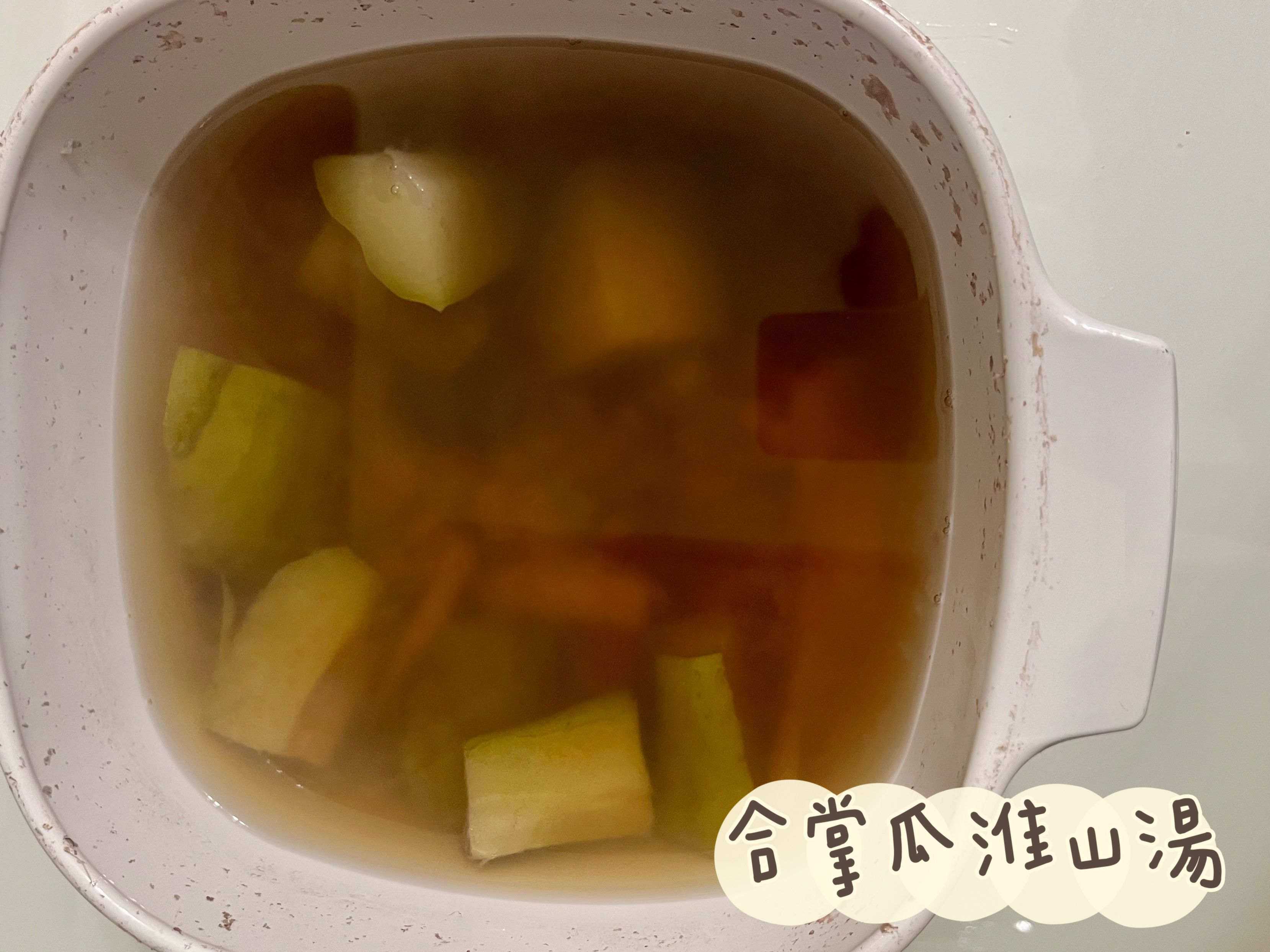 合掌瓜淮山湯 2025 年 11 月 29 日發佈 JessicaKitchen 列印 0 1 157 請稍等. 請稍等. 清甜的湯水,營養豐富又不太燥熱 食材 (1-2人) 1小時以上 食材 合掌瓜 1隻 淮山 5片 生薏米 20g 熟薏米 20g 紅棗 3粒 水 1500ml 陳皮 1片 鹽 適量 1合掌瓜切件 2紅棗剪開去核 3水滾後,轉細火,放入所有材料煲1小時 4加鹽調味