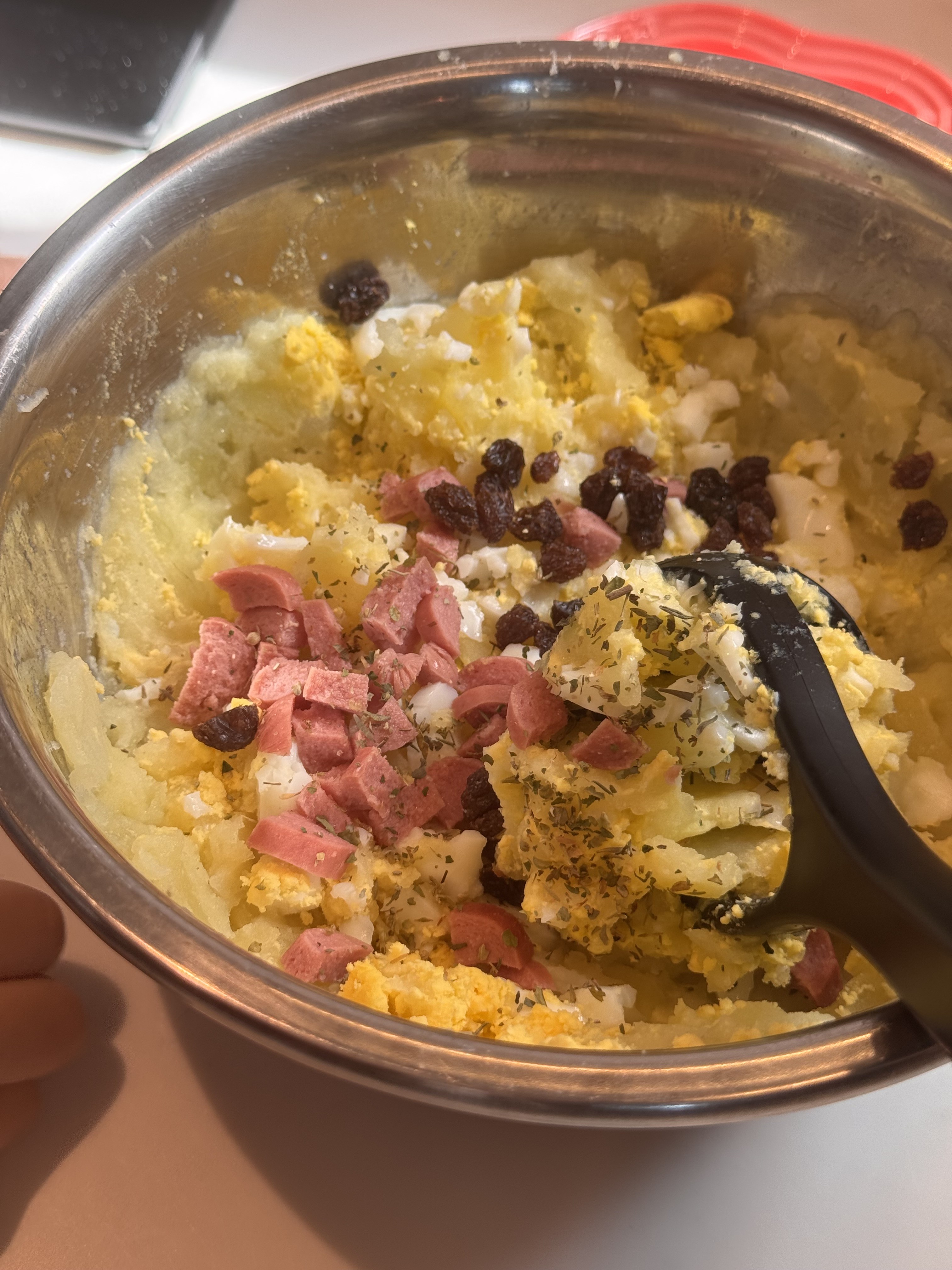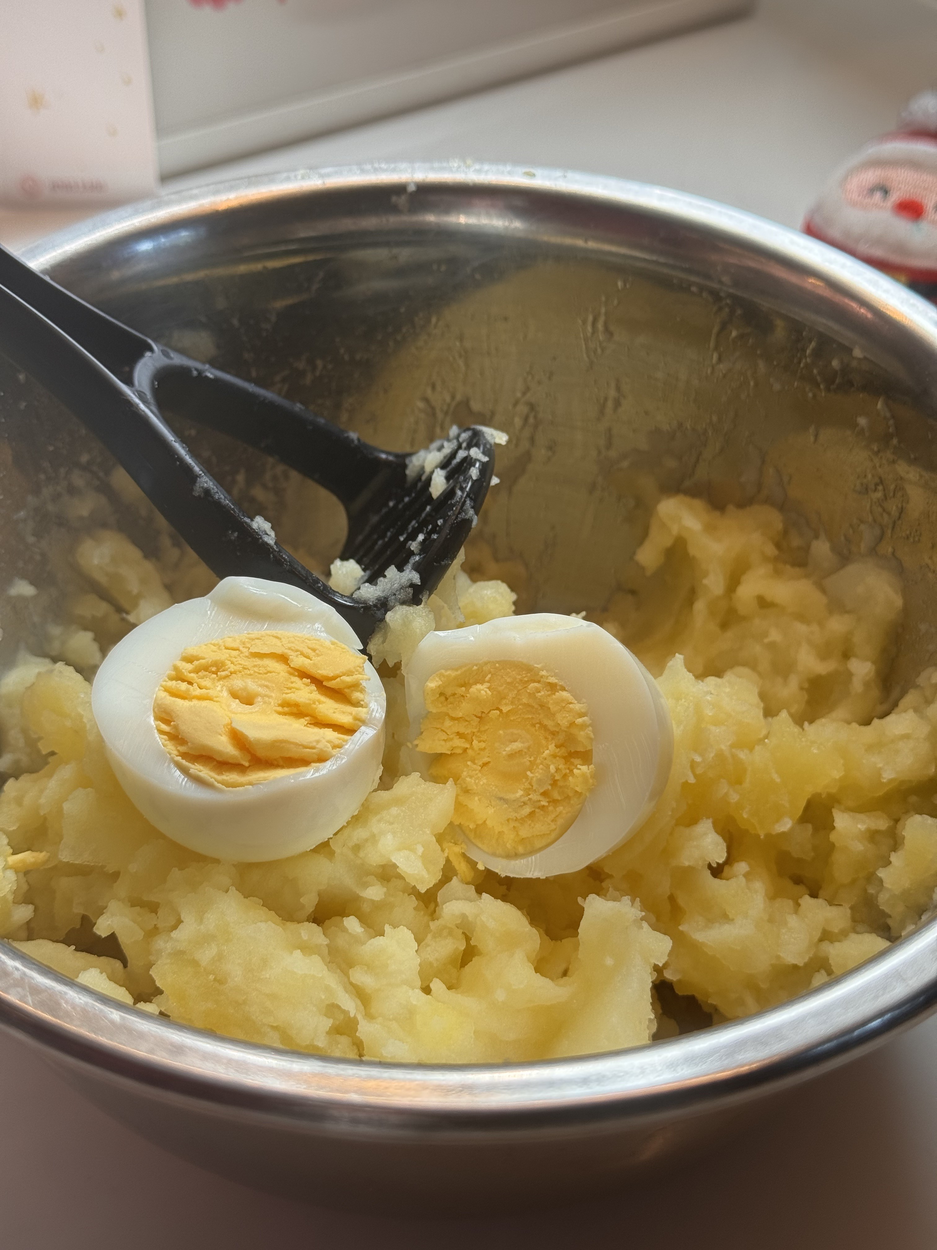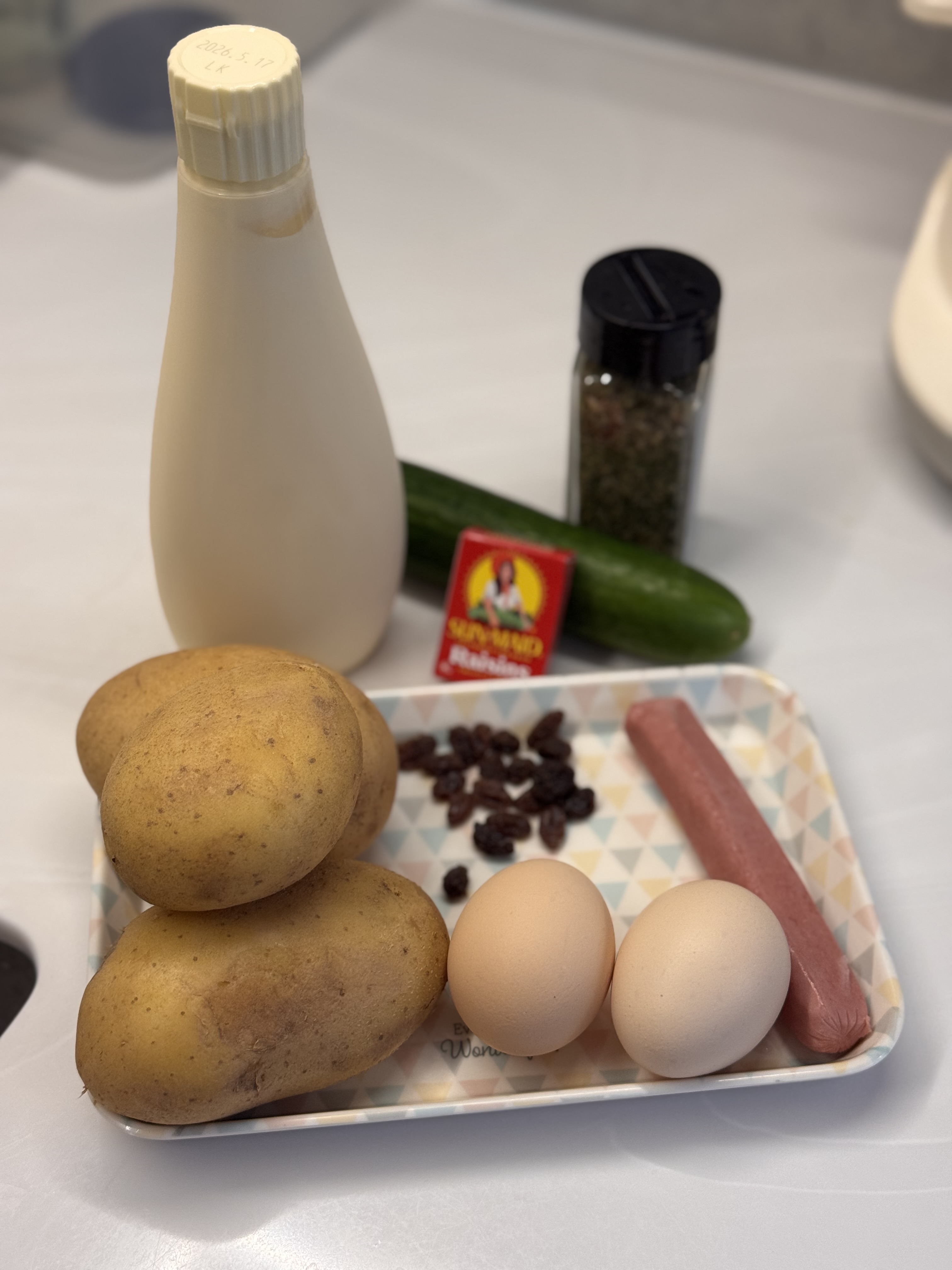 要煮得材料就我準備,細佬就幫手搣蛋殼、攪拌好薯仔沙律、幫手裝飾聖誕樹(放上青瓜片、腸仔粒、提子乾),最後加上星星🌟 完成✅ 我特別推介大家加埋提子乾, 含豐富營養價值,也帶天然甜味,配上薯仔沙律🥗好夾又加添更多營養!記得去各大超市買美國加州的提子乾呀!