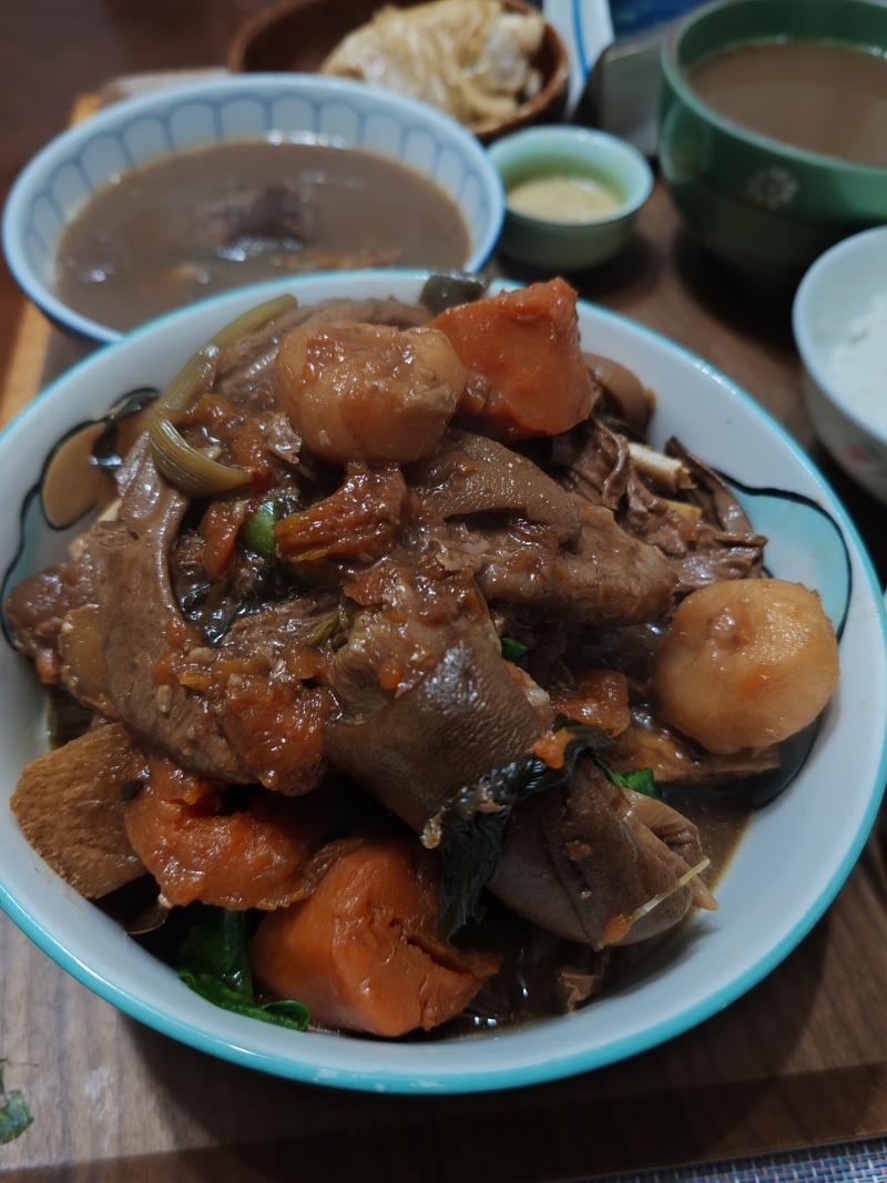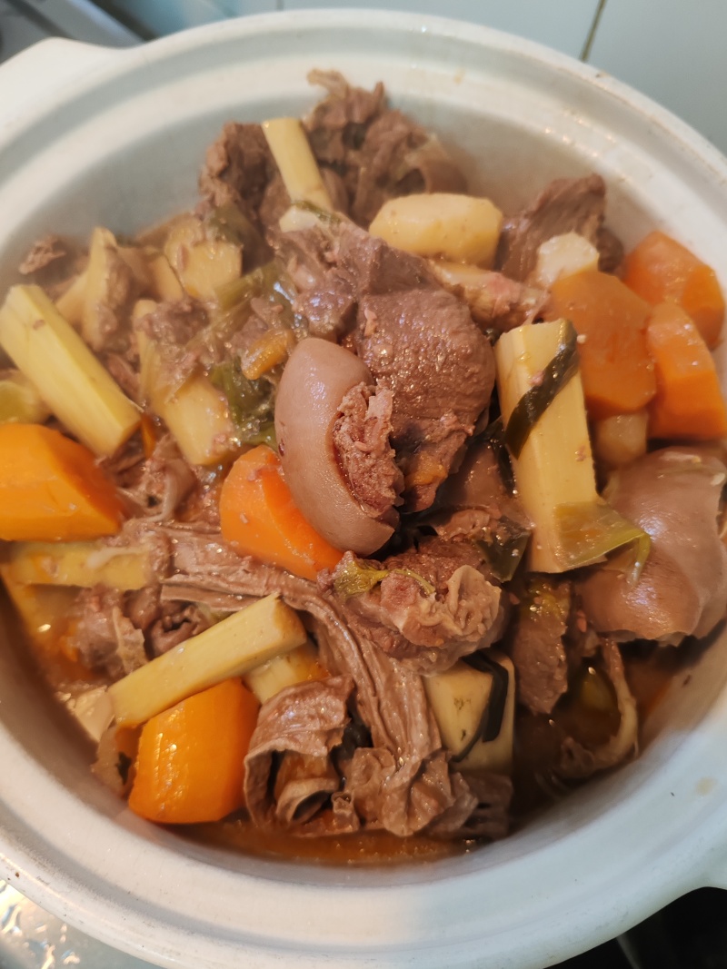 柱候支竹羊腩煲 2026 年 02 月 13 日發佈 蜜薯薯 列印 0 0 13 請稍等. 請稍等. 天寒地涑定必想起要食D香噴噴熱炳焫的支竹羊腩煲。自己動手做先會可以調配到合自己心水及對到屋企人的口味。 食材 (7-8人) 1小時以上 食材 羊腩 1斤半 馬碲 1袋 紅葡蔔 2條 竹蔗 1札 柱候醬 2湯匙 南乳 2磚 紅麴米釀 1湯匙 滾水 適量 蒜苗 3札 萎片 適量 黑豆竹 道量 炸支竹 道星 醮醬 腐乳 2磚 麻油 適量 1先將羊腩汆水后澀乾水后以白鑊用姜片烘走年多餘的油脂 2使可入醬爆香蒻苗及料頭,竹蔗,馬碲,仁 紅蘿蔔兜勻 3將醬汁與半腩炒到上色便可攢入滾水僅過面,加入红麴米釀 4放入黑豆竹及炸支竹,剩下的蒜苗 5蓋上高壓煲煩一小時,解壓開鍋便可上碟 6配上麻迪及搓溶腐乳做醮醬便可享用
