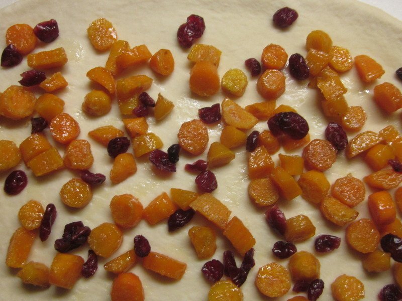 將自製的蜜蕃薯和酸酸甜甜的蔓越莓捲在麵包裡,甜而不膩,同事和家人都說好好吃!